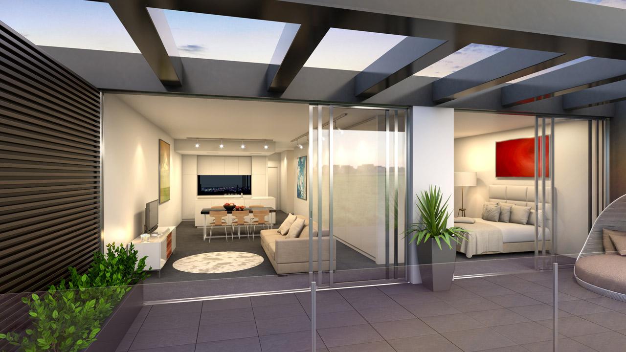 On the second floor, we find two double bedrooms and a bathroom equipped with shower and a large room with lounge / kitchen, small library and a study.